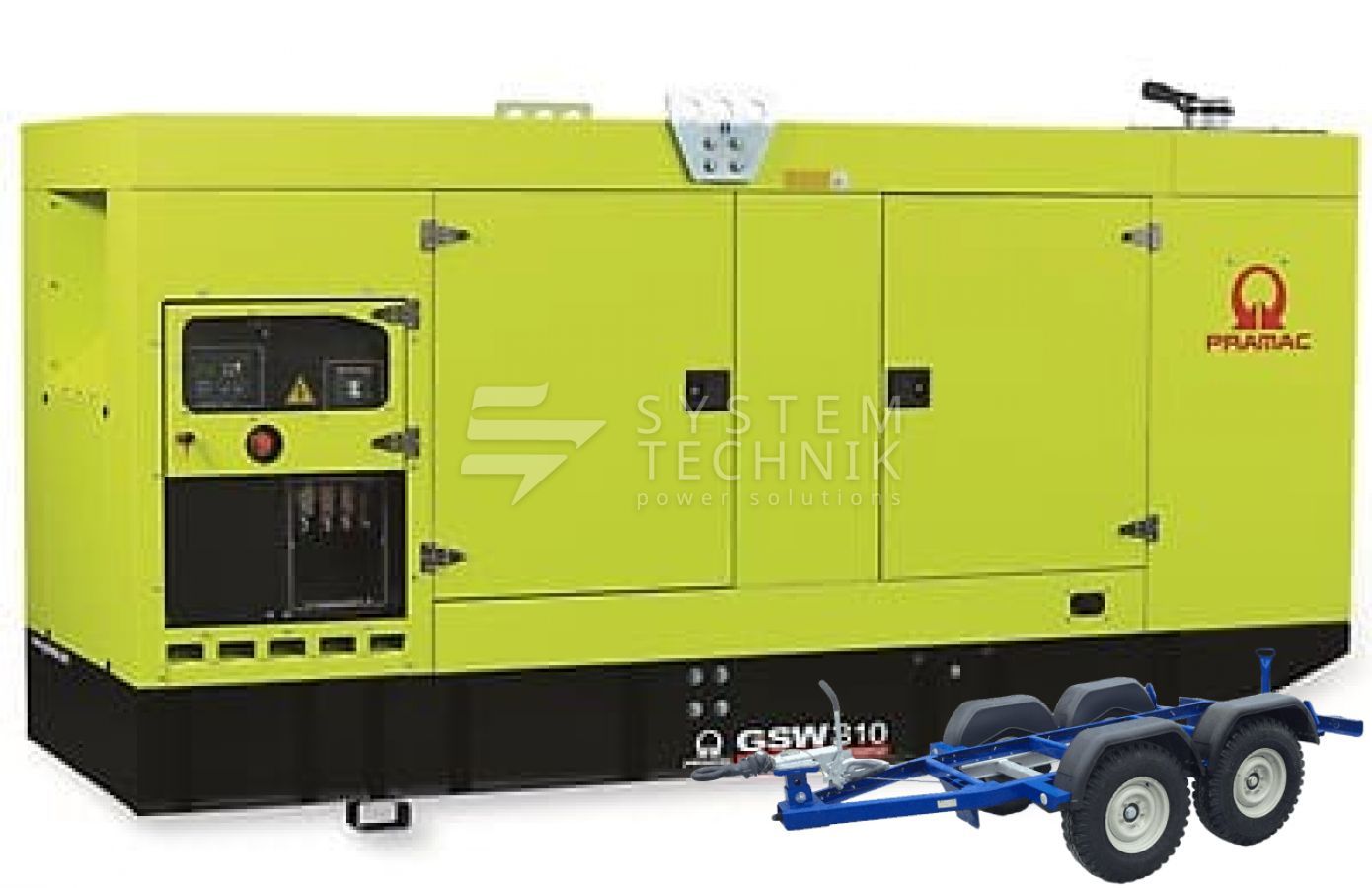 - Дизельный генератор Pramac GSW 310 DO 208V В кожухе на прицепе
