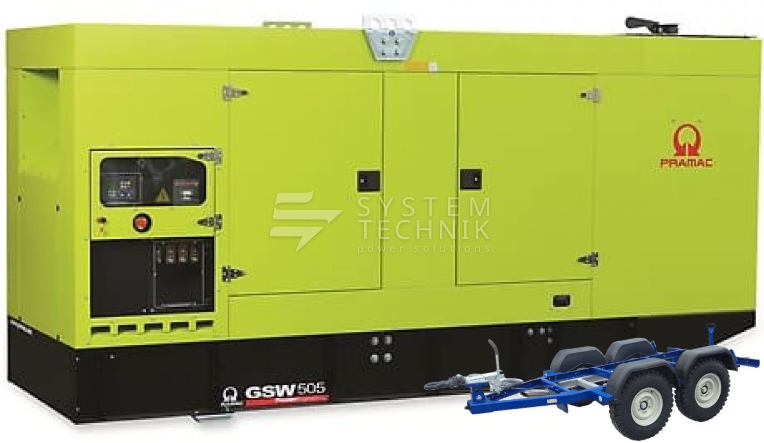 - Дизельный генератор Pramac GSW 505 V 230V 3Ф В кожухе на прицепе