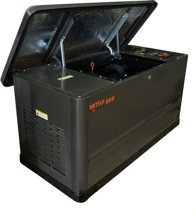 Трехфазная газовая электростанция в шумозащитном кожухе Mitsui Power GM 16000 с АВР изготовлена на базе двигателя Mitsui R999D с воздушным охлаждением. Генератор предназначен для организации автономного электроснабжения домов, небольших коммерческих, социальных и бытовых объектов.